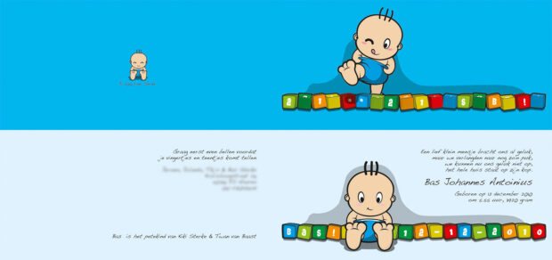 A Birth Announcement card design for a friend of mine. (inside and outside, fold through half which results in a 210x99mm card) (Private information blurred) I also designed a matching oval and square ceramic tile
